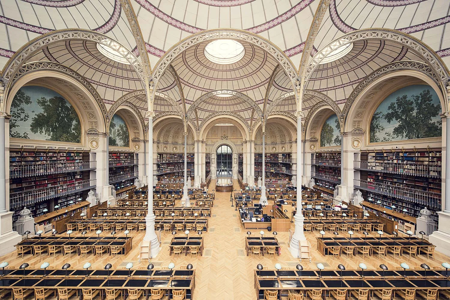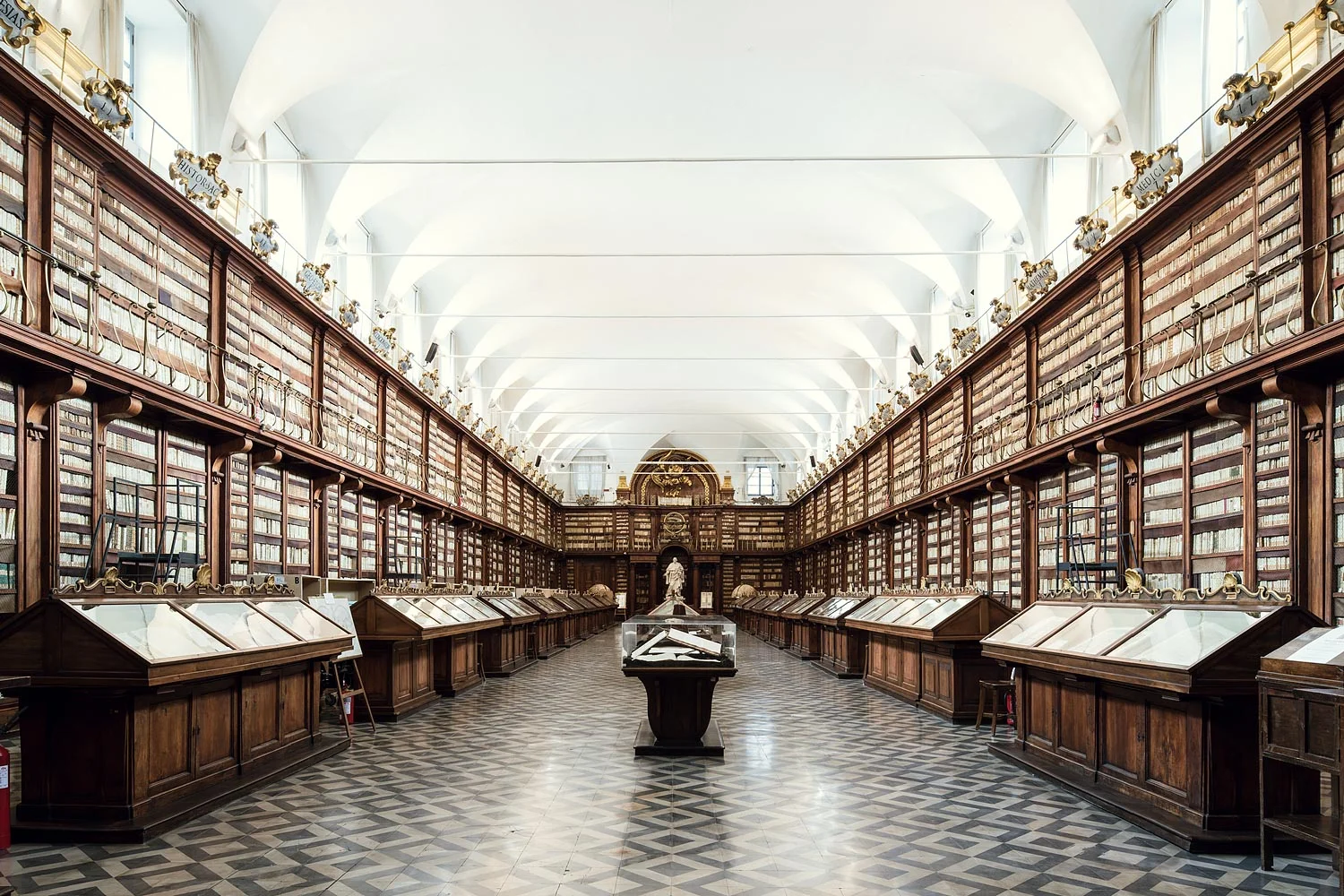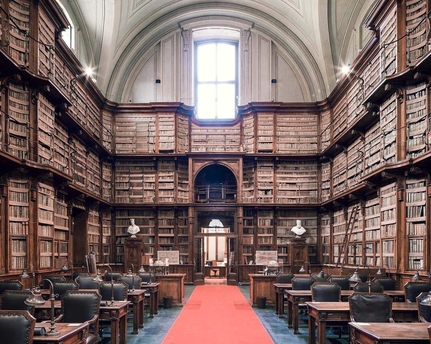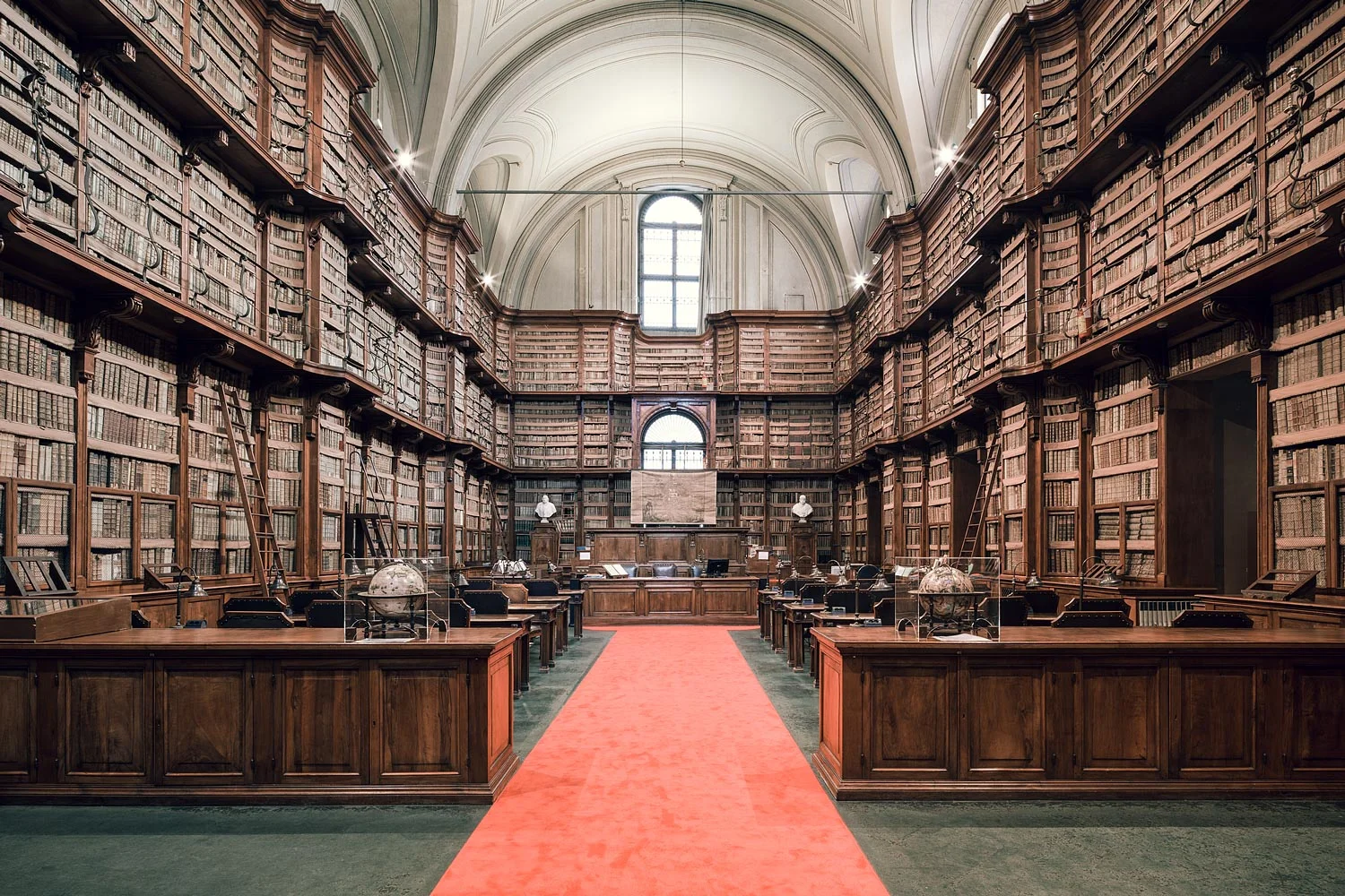 “Reading is solitude,” Italo Calvino once said, embodying the inspiration behind this series. These temples of cultural worship gather communities, and yet the literary experience, and therefore the experience of a library, remains solitary. Giving groups of scholars and peers glimpses into the past, present and future of humanity, literature offers an unparalleled opportunity to explore one's self from within through the unique internal narrative that each reader develops. It is this internal narrative that forms us when we are young, matures with us, and grows when we feed it. It was the first means of travel offered to many and continues to be the most accessible form of escape for millions of people seeking knowledge, the world, themselves. It is with an eye towards this improbable bled of public space and private experience that Poirier displays some of the finest libraries, both classical and modern, across Europe.